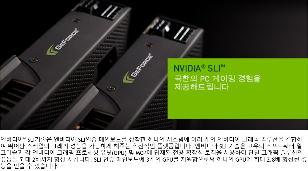 엔비디아에서 생산하는 그래픽카드칩인 GeForcef라는 그래픽카드를 2개이상으로