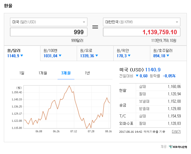 2017.08.16기준으로 999달러는 113만원 정도하네요.