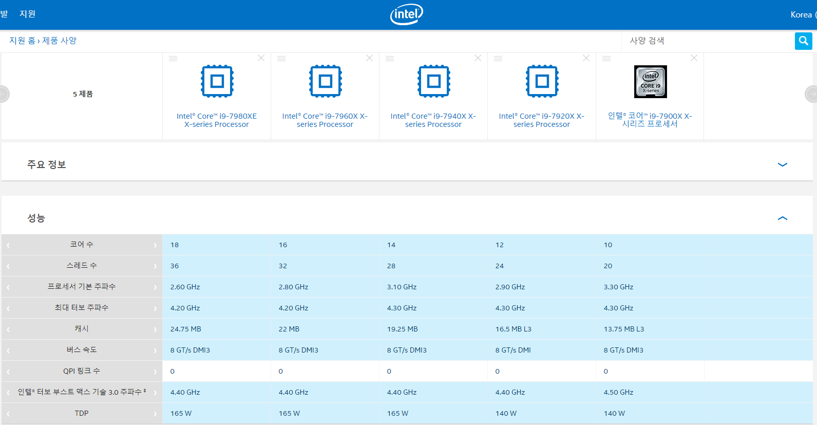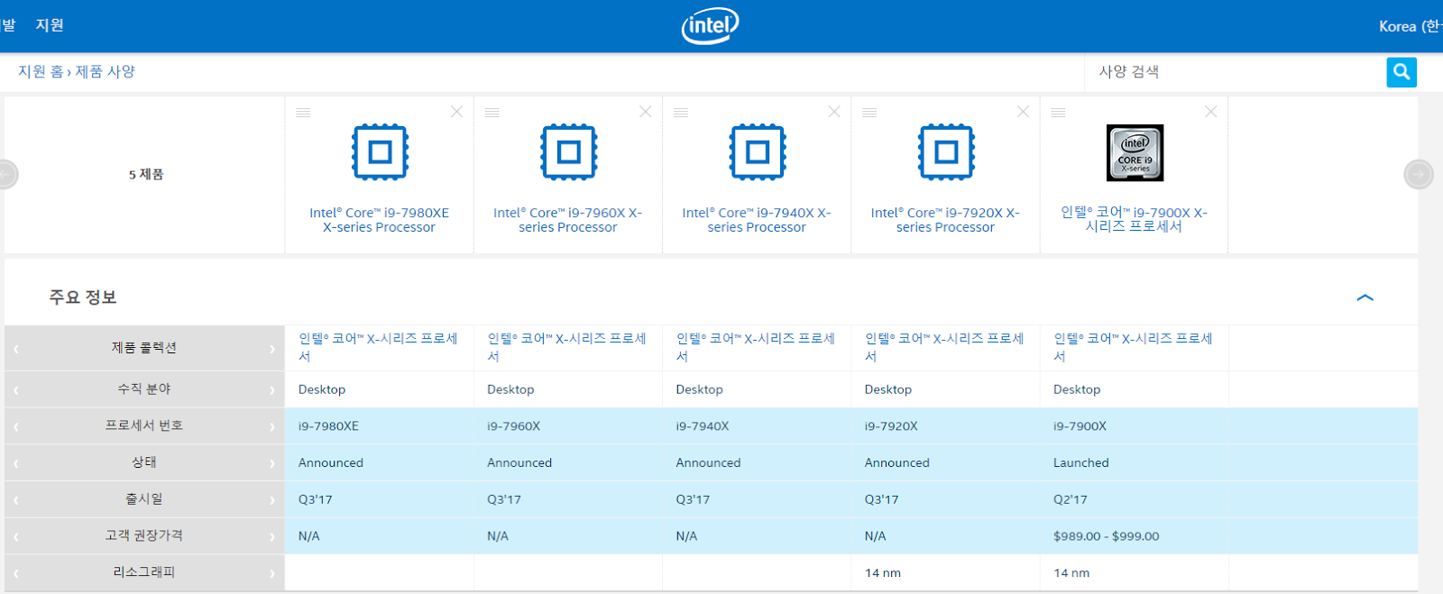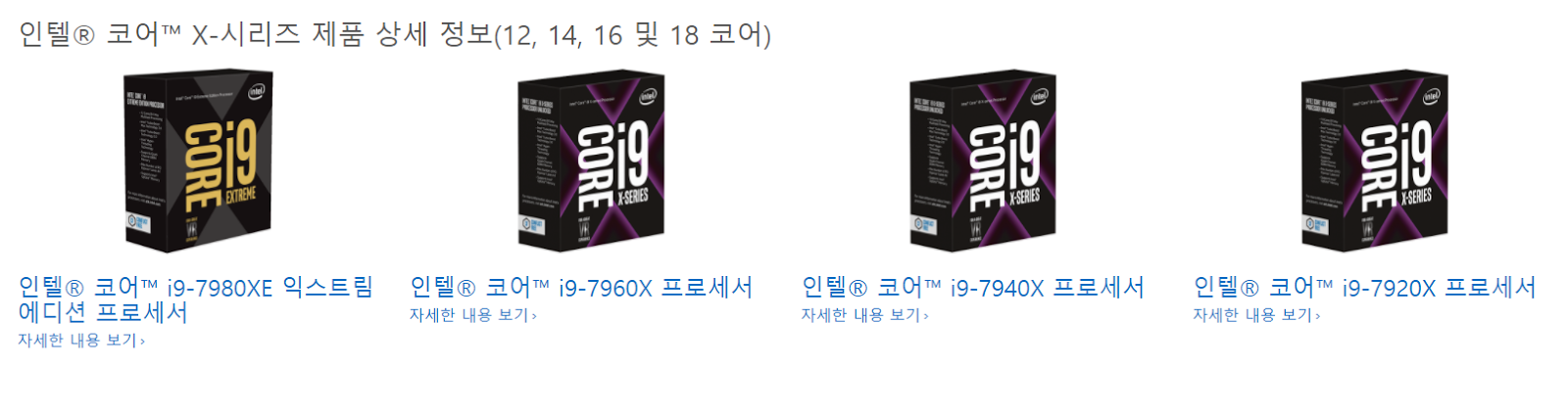 자료출처 : http://ark.intel.com/ko/products/series/123588/Intel-Core-X-series-Processors