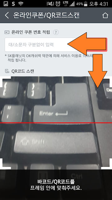 4. QR코드를 스캔하거나 쿠폰번호입력