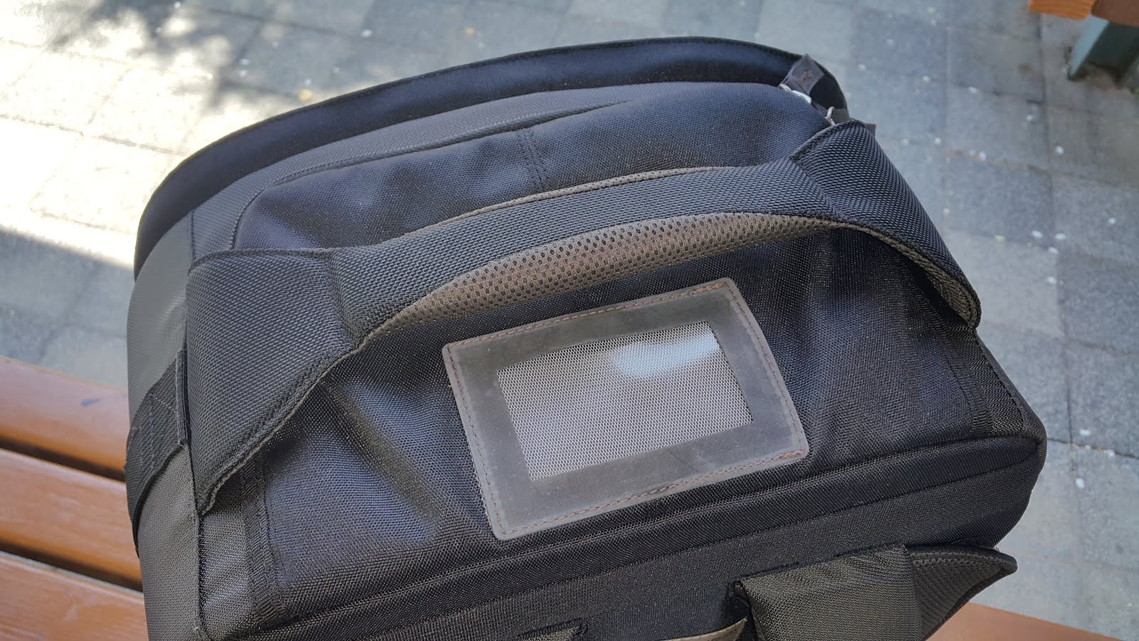 등쪽의 패드에 찍찍이로 가방끈을 넣을 수 있어서