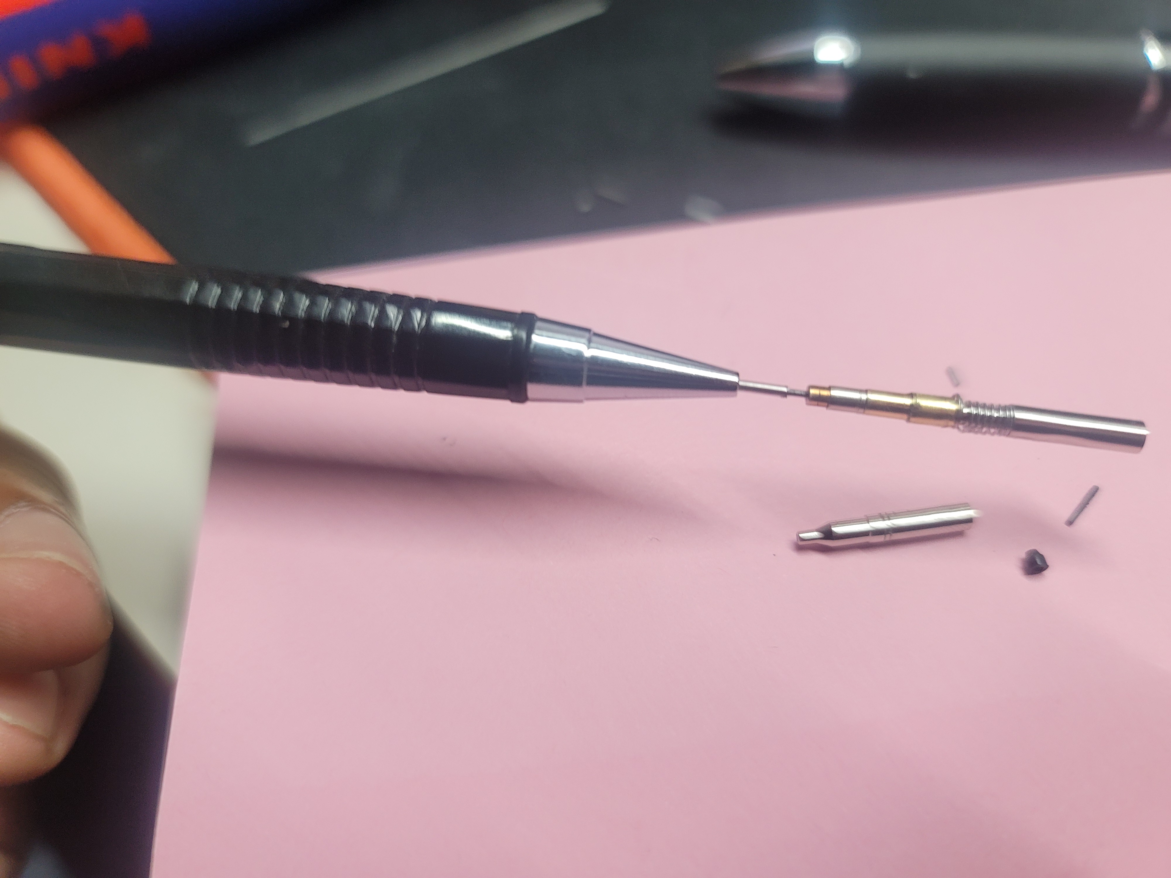 분리되는 순간 부러진 샤프심들이 떨어지더라고요.